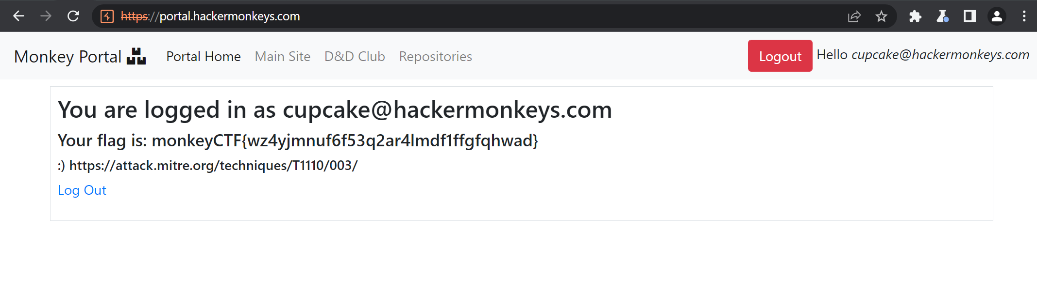 Embracing the monkey theme of the CTF, I decided that 220 commits wasn't enough to justify scripting something or finding a tool to look through all the commits. So like a true monkey I clicked through each one individually before eventually stumbling on one which removed a base64 encoded “password_token”. Before I get clowned on too hard for this, I got first blood on this challenge lol.