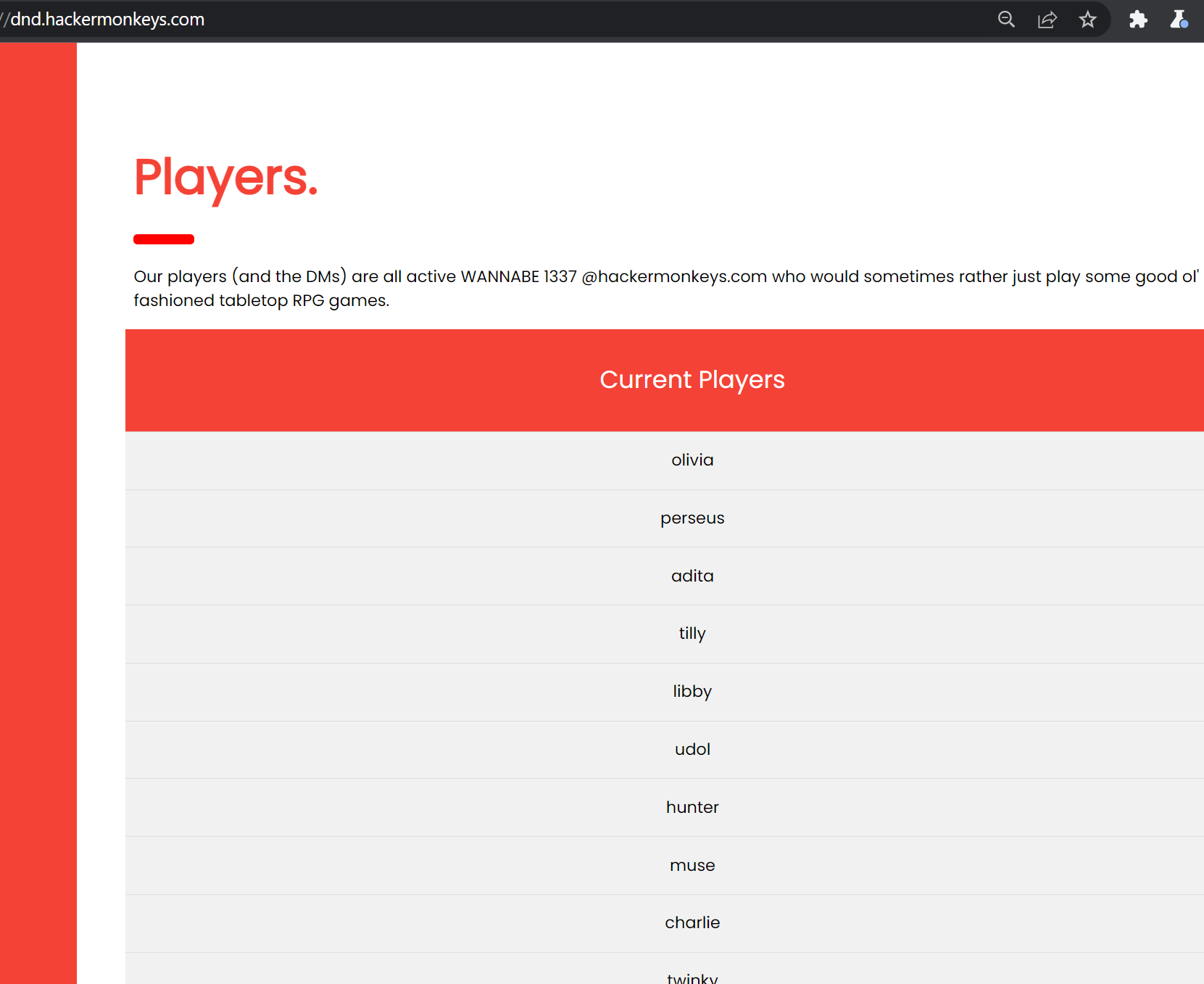 This really confused me, and it wasn't until hours later at 1am when I realized I had completely forgotten about the second interesting subdomain I saw, dnd.hackermonkeys.com