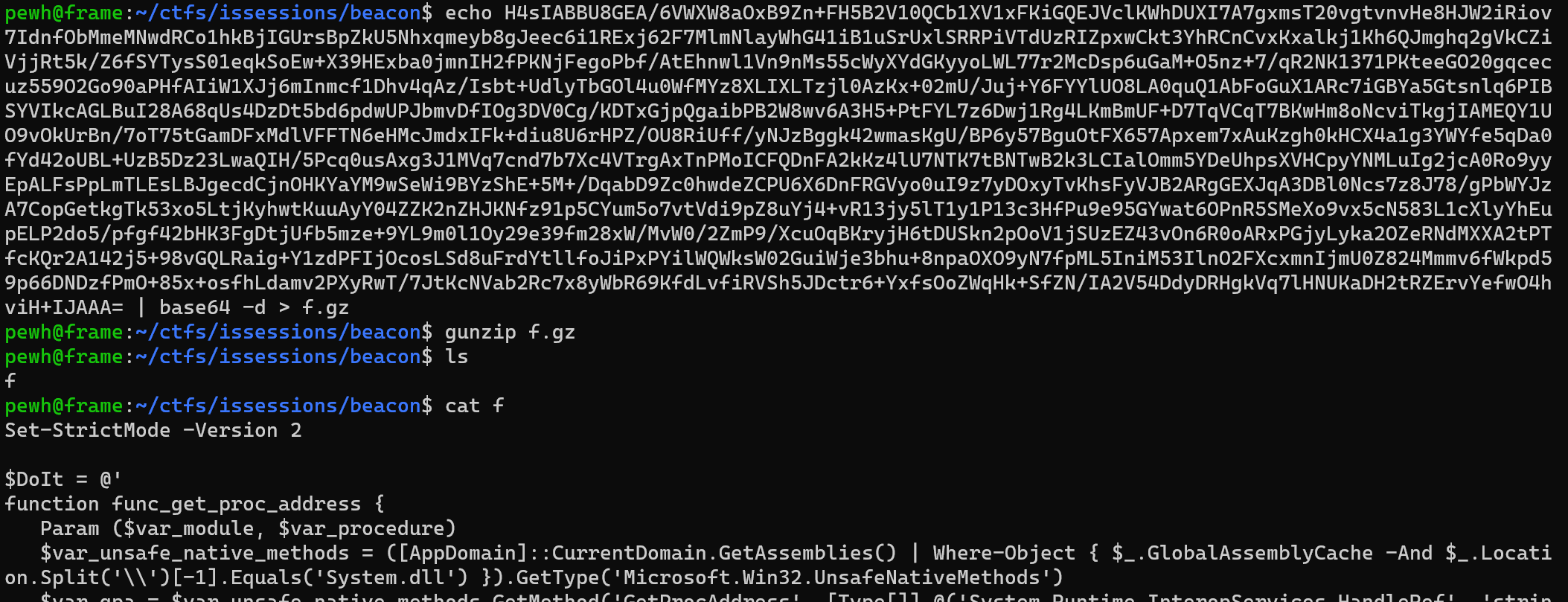 Upon decoding the initial base64 you'll see some more base64 inside of a powershell script. Decode this as well and you'll get a gzip file.