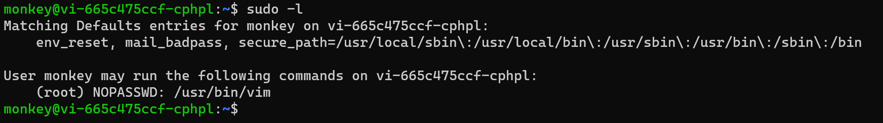 Since this challenge was named Vi and in the Pwn category, my first reaction was that it's a privilege escalation where the user can run Vi as root.