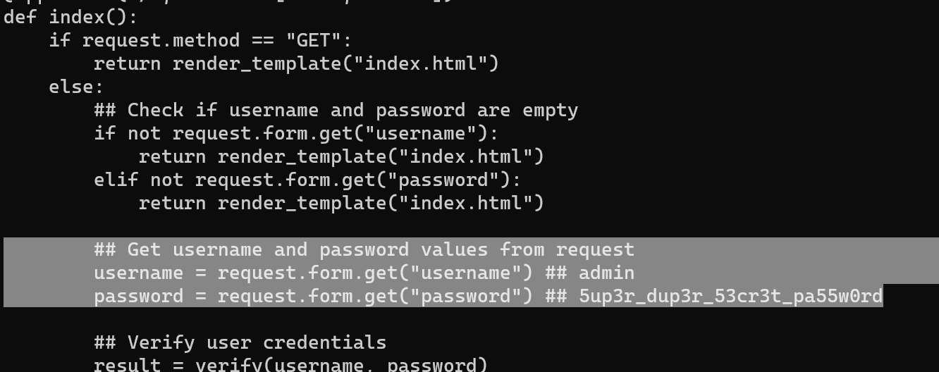 Printing the old contents of app.py, there's a comment with a password (the flag).